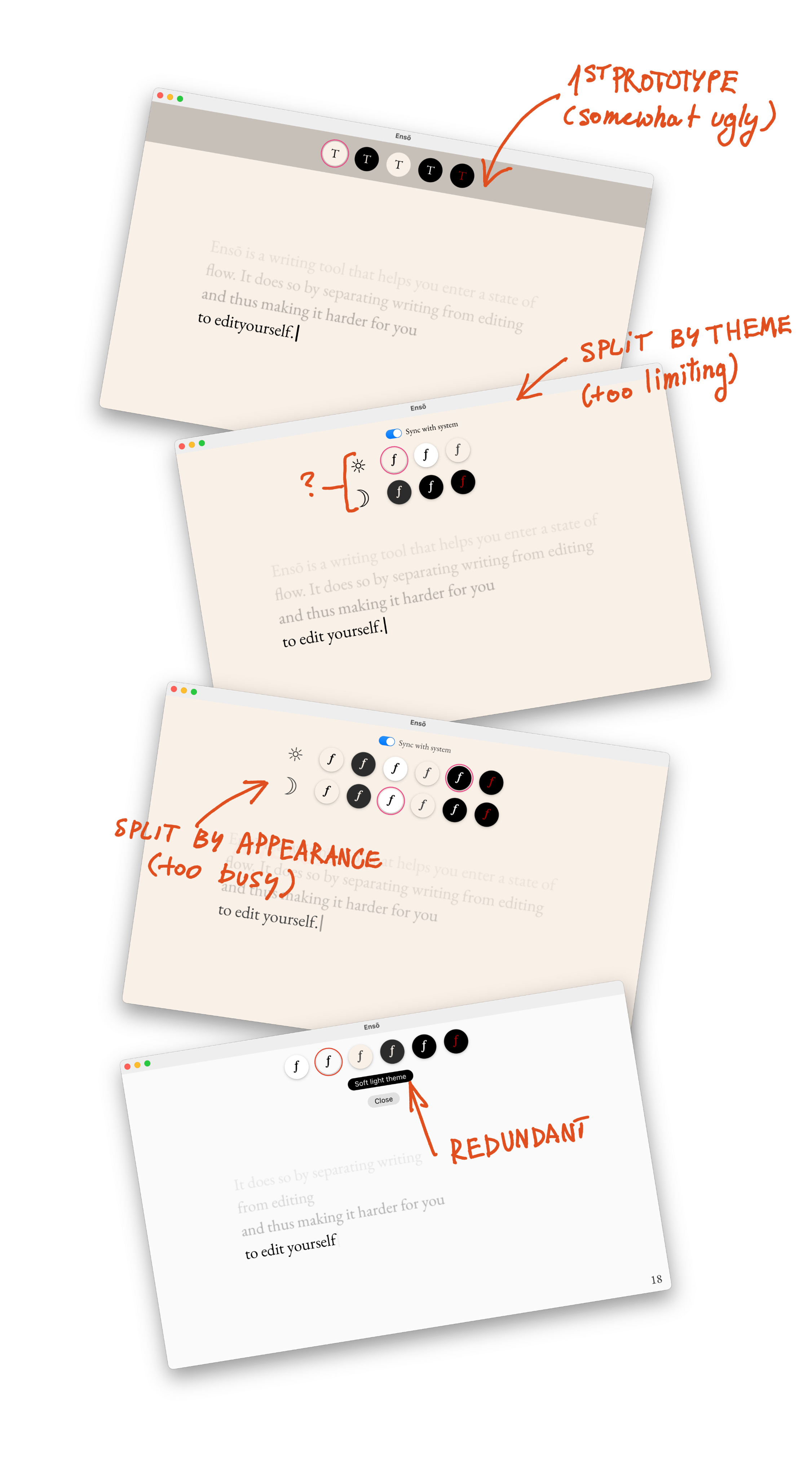 - More of the theme designs are based on familiarity than I would like to admit. There's nothing inherently wrong with that. On the contrary, I think that's valuable. But how should I talk about this when I add themes to Ensō website before the release?